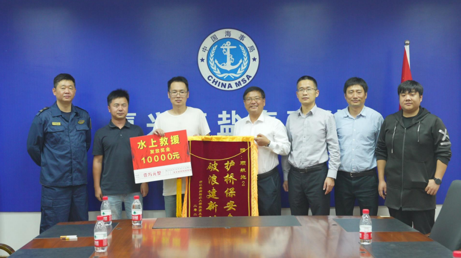 党委副书记、副董事长、总经理黄立元和党委委员、副总经理张正山向嘉兴市海上搜救中心、顺航拖2及浙盐渔00025赠送锦旗