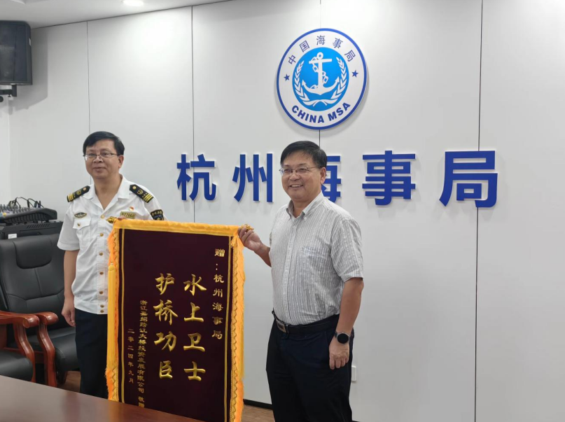 党委副书记、副董事长、总经理黄立元向杭州海事局赠送锦旗
