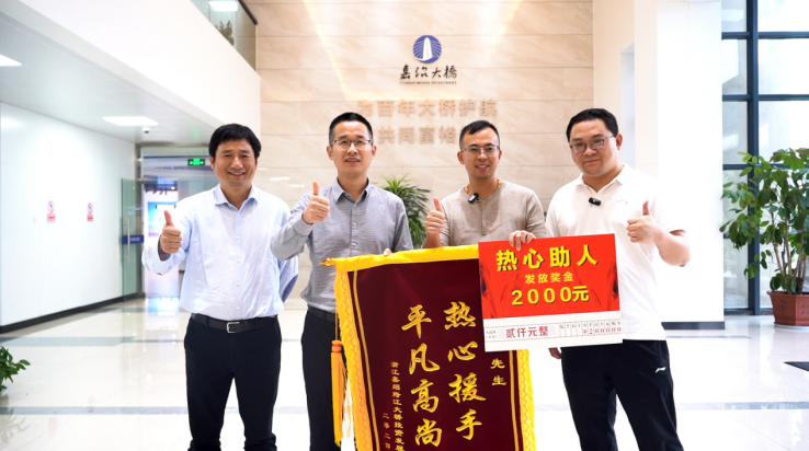 在这千钧一发的危难时刻,他义无反顾施以援手,帮助他人成功脱险,让我们为汤先生点赞。为表彰此举,嘉绍大桥公司于10月15日,特向汤先生送上锦旗。