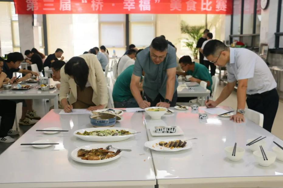 8月29日,嘉绍大桥公司职工餐厅内欢声阵阵,香飘四溢,第三届“桥·幸福”美食比赛正式拉开序幕。各参赛员工精神抖擞,以精湛厨艺为笔、以特色食材为墨,在方寸灶台间大显身手。