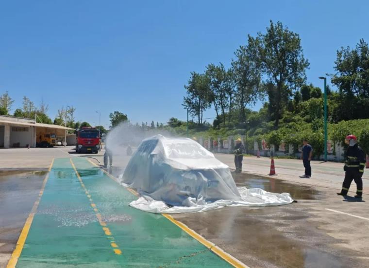 交流结束后,大桥消防站第一时间组织全体指战员开展学习成果转化培训,重点针对灭火毯在覆盖窒息灭火中的实际操作、新能源汽车不同起火阶段的处置流程与战术要点,开展了多轮模拟实战演练。后续,大桥消防站还将持续强化与大桥监控中心、高速交警及医疗急救等部门的联动协作机制,着力提升消防救援队伍在应对新型事故时的快速响应、科学处置和综合协同能力,切实筑牢过往司乘安全防线。