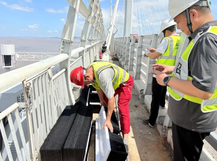 自今年2月起,公司精心组织、周密部署,在开展内业资料梳理的同时兼顾外业养护攻坚,先后启动嘉绍大桥刚性铰密封节及伸缩缝附属构造综合提升改造项目、2025年嘉绍大桥桥面铺装养护工程,对桥面病害、刚性铰防排污系统、密封系统、维养通道系统进行修复升级改造,进一步提升大桥外业整体质量,以最佳状态迎接国家公路网技术状况检测。