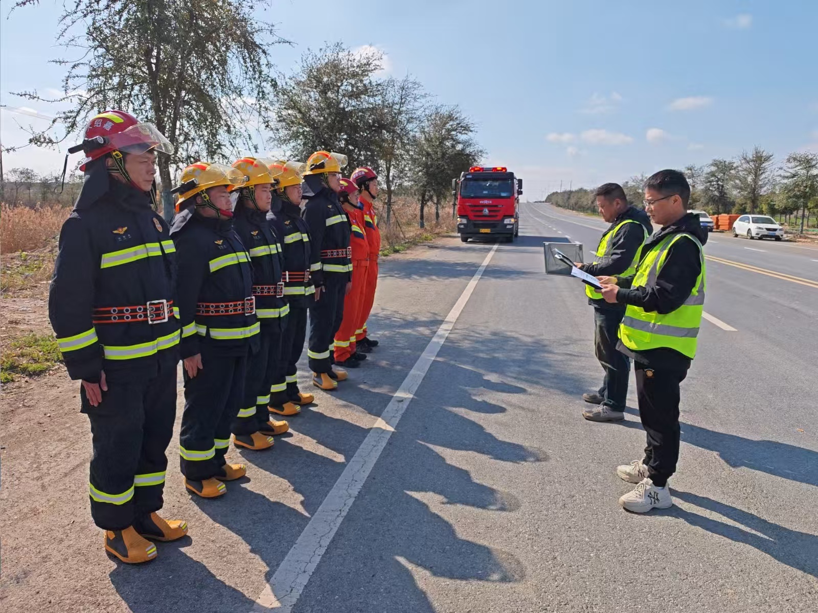 针对消防救援队伍,培训重点围绕高速公路救援中的行车安全、现场警戒、破拆救生、火灾处置、新能源车风险识别等内容展开。参训人员通过理论讲解与实操演练相结合的方式,熟练掌握从接警出动到现场处置、从人员救助到装备使用的全流程操作规范,进一步提升在复杂环境下的风险辨识与应急处置能力。